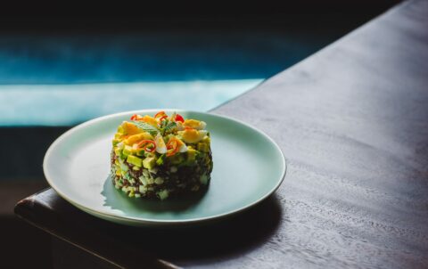 Tofu, Avocado & herbs fresh spring roll, wrapped with rice flakes